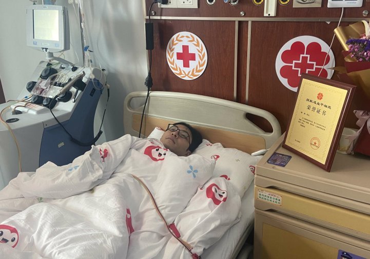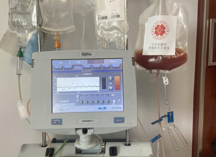 直到采集前,他一共注射了9针动员剂,因为药物的作用,腰酸了几天。采集过程中,胡双安静地躺在病床上,脸上是内敛的愉悦。